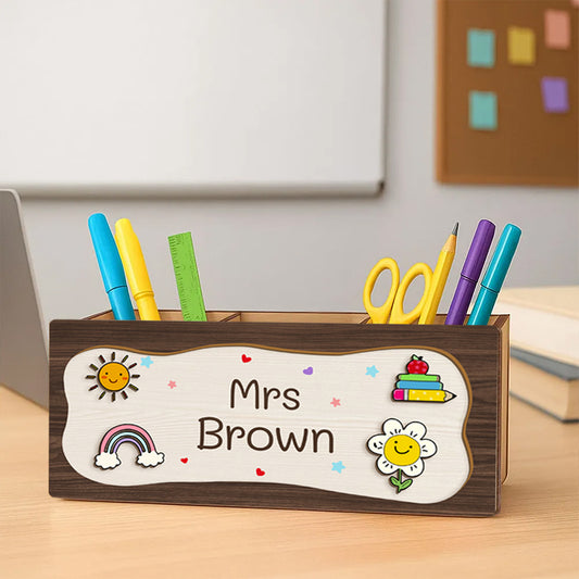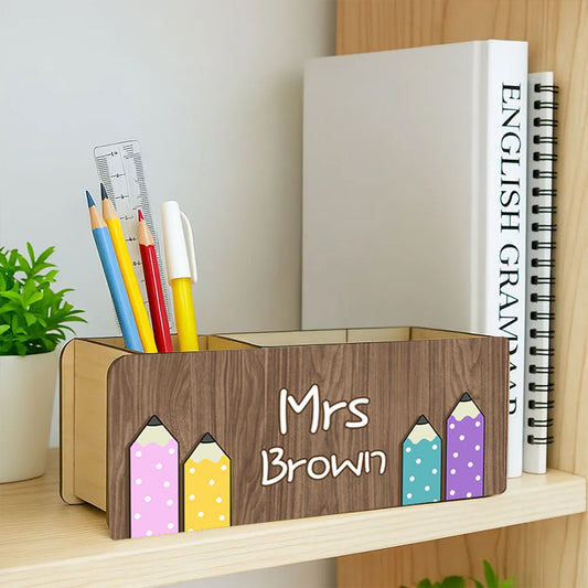 Personalized Wooden Pen Pencil Holder – Custom Name Gift for Back to School, Classroom, or Teacher Appreciation