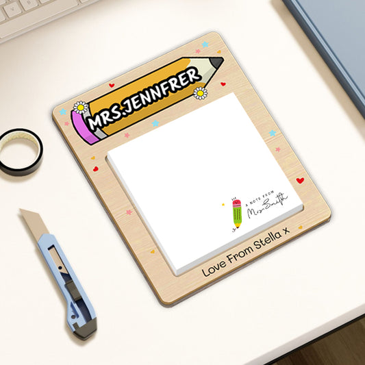 Personalized Wooden Sticky Note Holder with Custom Name Notes – Perfect Gift for Teachers