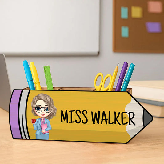 Personalized Pencil-Shaped Wooden Pen Pencil Holder – Custom Name & Character Gift for Back to School, Classroom, or Teacher Appreciation
