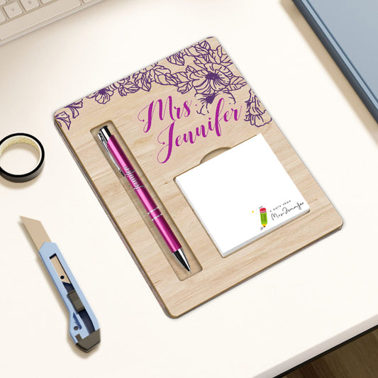 Personalized Sticky Note Holder Set – Includes Custom Name Notes & Matching Pen – Ideal Gift for Teachers