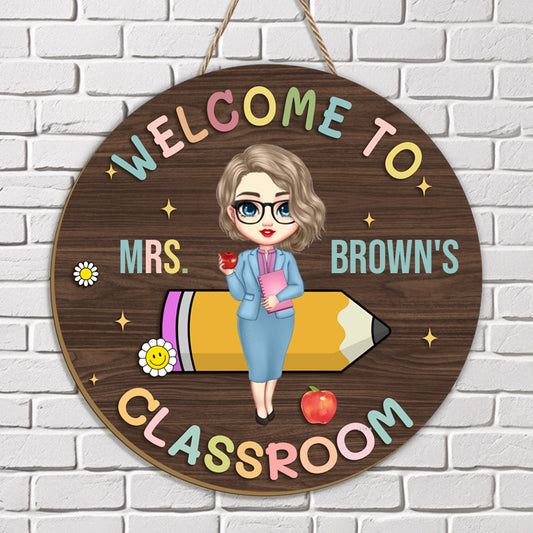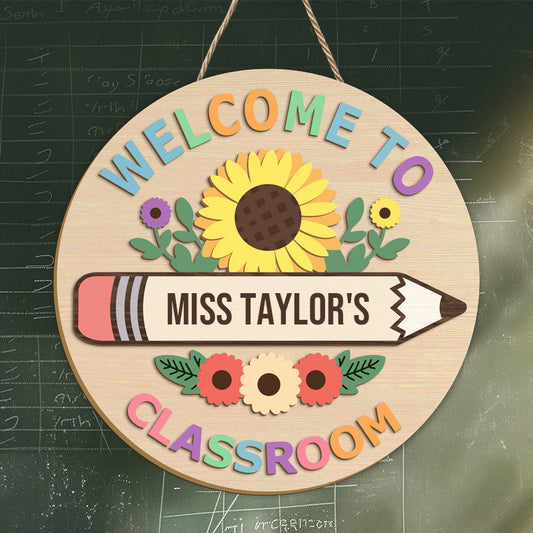Custom “Welcome to Classroom” Wooden Sign – Personalized Teacher & Name – Back to School or Teacher Gift