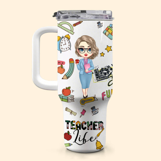 Custom Teacher Character Tumbler – Personalized 40 oz Insulated Cup with Straw, Back to School Gift for Teachers