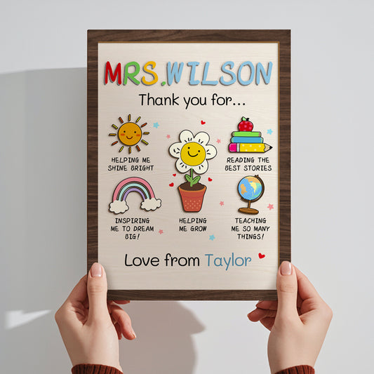 Custom “Thank You for Helping Me Shine” Wooden Plaque with Stand – Personalized Name – Perfect Back to School & Teacher Appreciation Gift