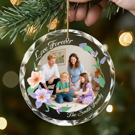 Personalized Floral Family Photo Ornament – Custom Glass Keepsake with Photo & Floral Design – Gift for Family & Holidays