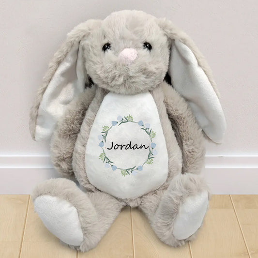 Custom Personalized Keepsake Bunny – Elegant Floral Wreath Design with Name – Perfect Gift for Birthdays, Baby Showers & Special Moments