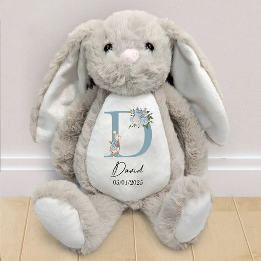 Custom Personalized Keepsake Bunny – Charming Floral Initial Design – Perfect Gift for Birthdays, Baby Showers & Special Moments