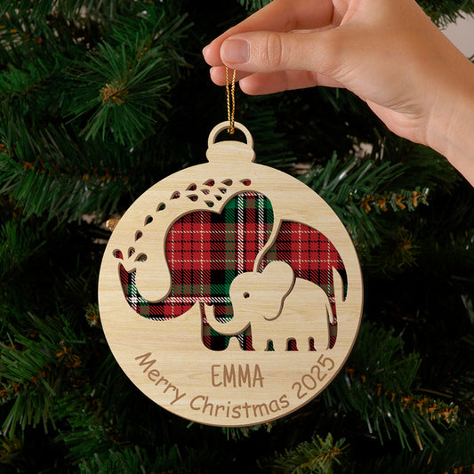 Custom Baby Name Merry Christmas 2025 Wooden Ornament– 2-Layered Elephant Keepsake – Gift for Families & Loved Ones