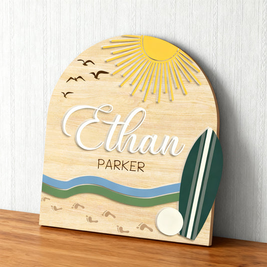 Personalized Wooden Baby Name Sign – Natural Forest and Ocean Design for Nursery or Baby Shower Gift