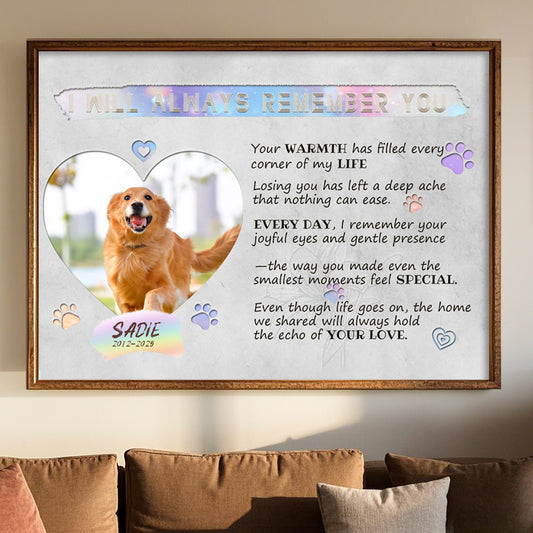 Custom Photo I Will Always Remember You- Pets Personalized Custom Horizontal Poster/Canvas - Sympathy Gift For Pet Owners, Pet Lovers