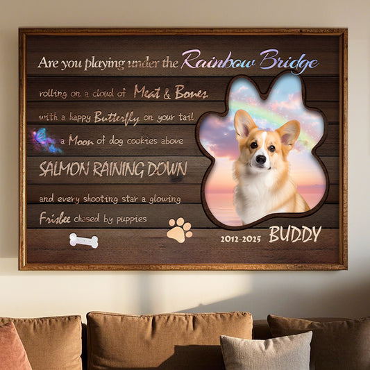 Custom Photo Are You Playing Under The Rainbow Bridge - Pets Personalized Custom Horizontal Poster/Canvas - Sympathy Gift For Pet Owners, Pet Lovers