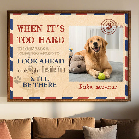 Custom Photo When It's Too Hard To Look Back - Pets Personalized Custom Horizontal Poster/Canvas - Sympathy Gift For Pet Owners, Pet Lovers