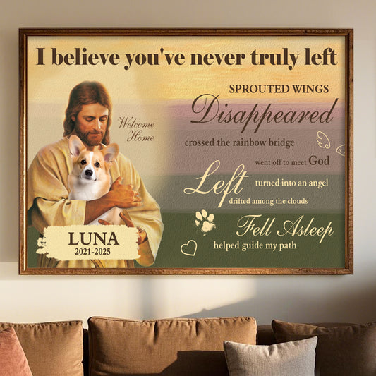 Custom Photo I Believe You're Never Truly Left- Pets Personalized Custom Horizontal Poster/Canvas - Sympathy Gift For Pet Owners, Pet Lovers