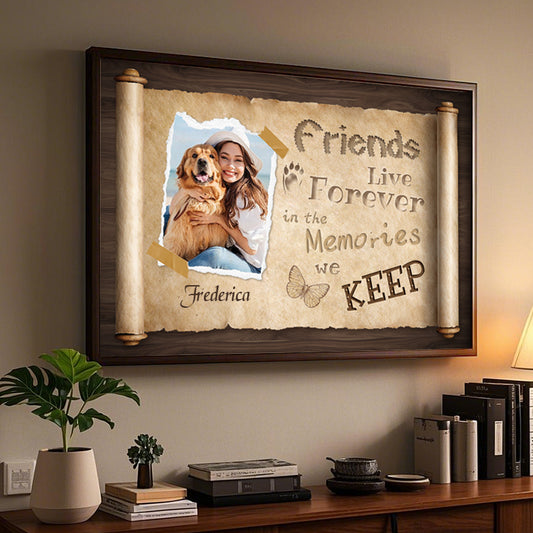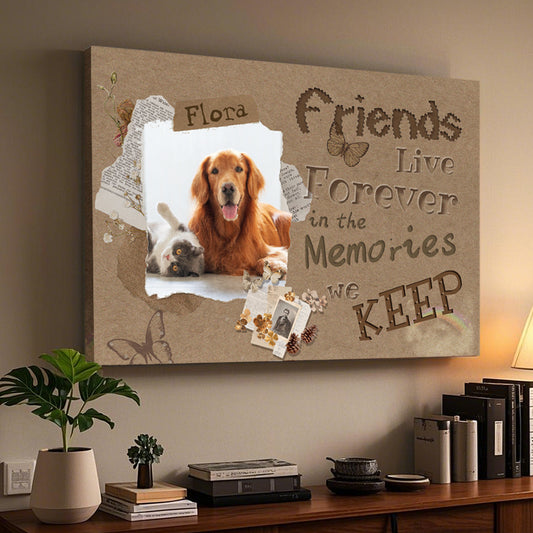 Custom Photo Friends Live Forever In The Memories - Pets Personalized Custom Horizontal Canvas - Sympathy Gift For Pet Owners, Pet Lovers