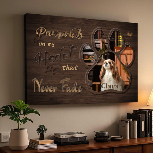 Custom Photo Pawprints On My Heart - Pets Personalized Custom Horizontal Canvas - Sympathy Gift For Pet Owners, Pet Lovers