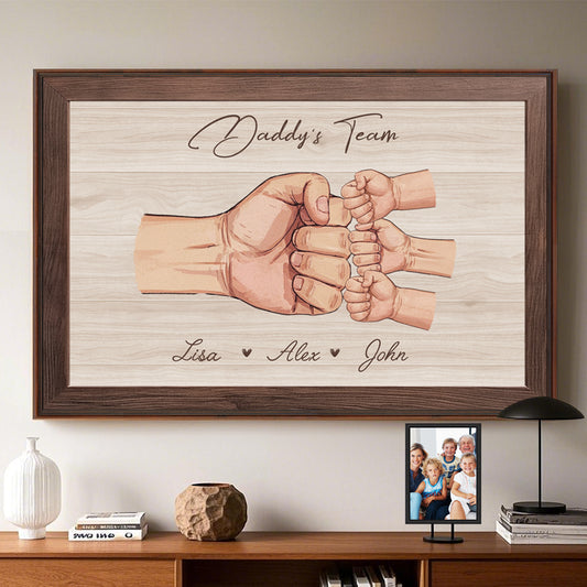 Custom Daddy & Kids, Together We're A Team- Family Personalized Custom Horizontal Poster - Father's Day, Birthday Gift For Dad