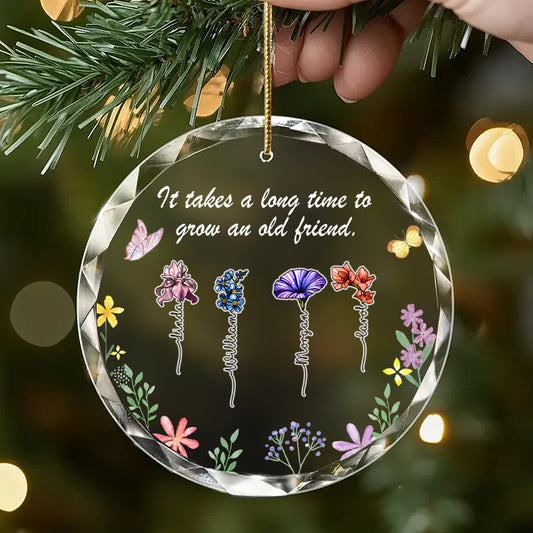 Personalized Floral Friendship Ornament – Custom Glass Keepsake with Names & Bloom Design – Gift for Friends & Special Bonds