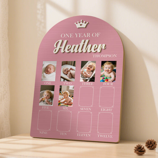 Baby First Year Photo Frame – Personalized Wooden Keepsake for 12 Monthly Photos, Perfect Gift for New Parents