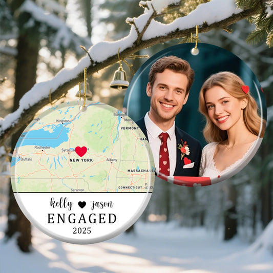 Personalized City Map Ornament – Custom Ceramic Keepsake with Names, Year & Photo – Gift for Engagement, Wedding & Anniversary