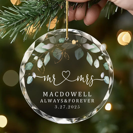 Personalized Mr ❥ Mrs Wedding Ornament – Custom Glass Keepsake with Last Name & Date – Gift for Newlyweds, Spouse, or Anniversary Couple