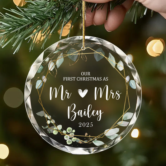 Personalized Our First Christmas as Mr ❤ Mrs Ornament – Custom Glass Keepsake with Last Name & Year – Gift for Newlyweds, Spouse, or Married Couple