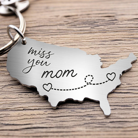 Custom Miss You Keychain – Personalized Keepsake Gift for Couples, Family, and Friends in Long Distance Relationships