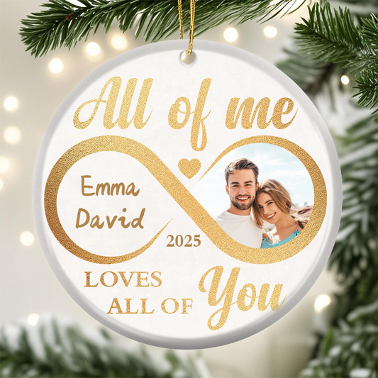 Personalized Couple Infinity Ornament – Custom Ceramic Keepsake with Photo, Names & Date – Romantic Gift for Anniversary, Wedding, or First Christmas