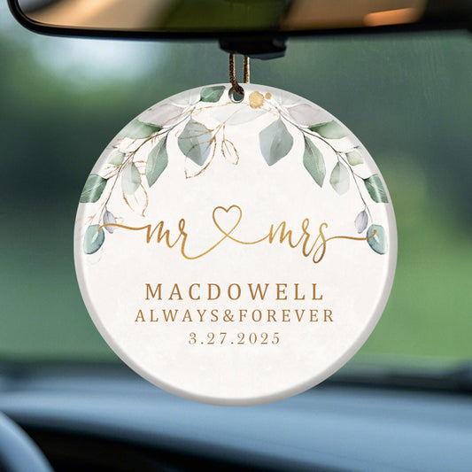 Personalized Mr ❥ Mrs Wedding Ornament – Custom Ceramic Keepsake with Last Name & Date – Gift for Newlyweds, Spouse, or Anniversary Couple