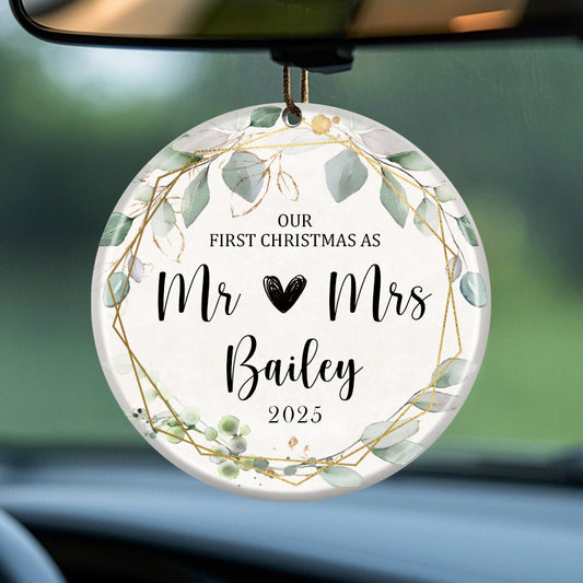Personalized Our First Christmas as Mr ❤ Mrs Ornament – Custom Ceramic Keepsake with Last Name & Year – Gift for Newlyweds, Spouse, or Married Couple