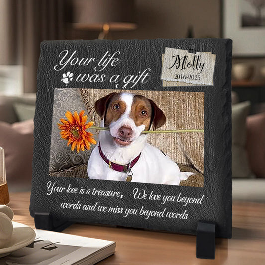Custom Photo Your Life Was A Gift- Pet Memorial Square-shaped Stone Custom - Sympathy Gift For Pet Owners, Pet Lovers