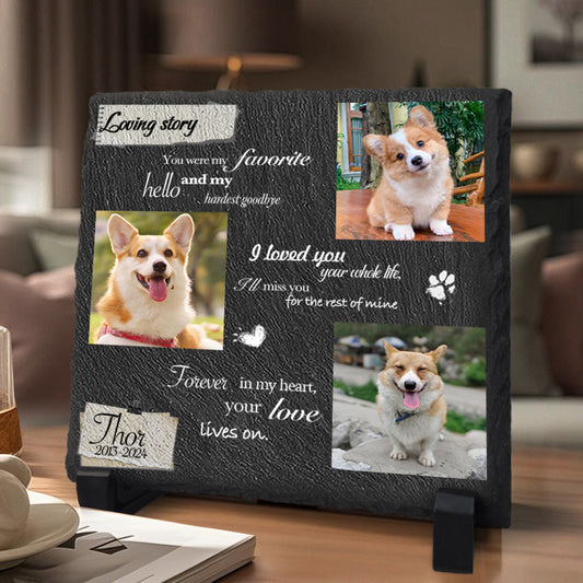 Custom Photo You Were My Favorite Hello- Pet Memorial Square-shaped Stone Custom - Sympathy Gift For Pet Owners, Pet Lovers