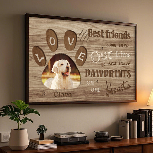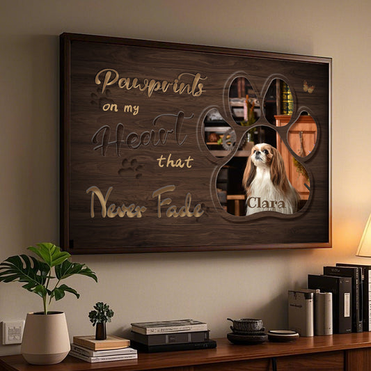 Custom Photo Pawprints On My Heart - Pets Personalized Custom Horizontal Poster - Sympathy Gift For Pet Owners, Pet Lovers