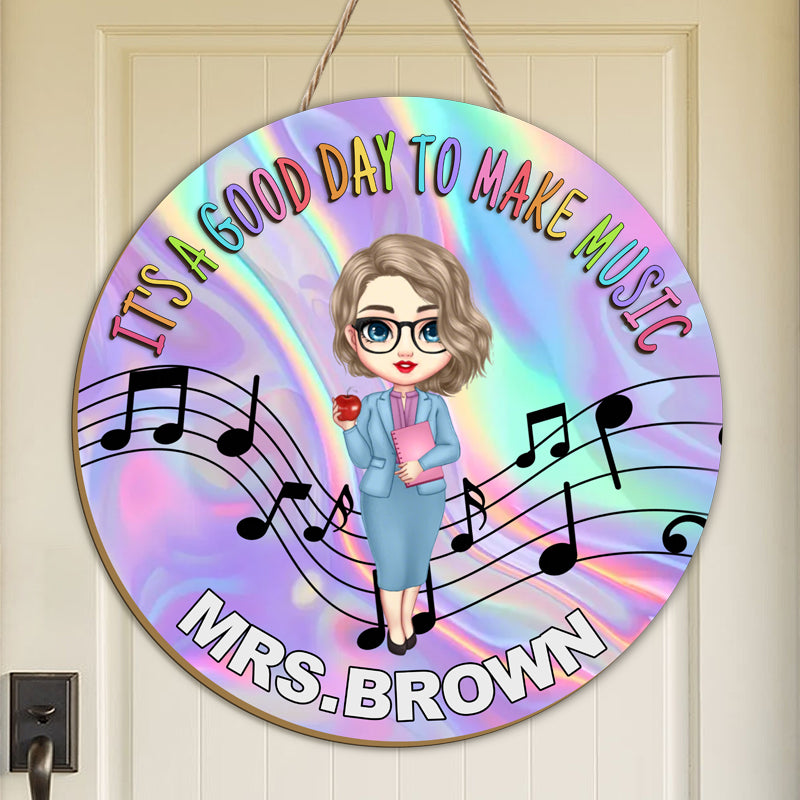 Custom “It’s a Good Day to Make Music” Wooden Sign – Personalized Name & Character – Gift for Music Teachers or Music Room