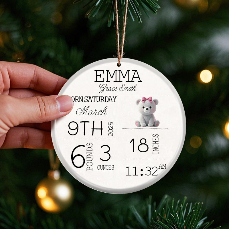 More than just decoration, this ornament is a lasting reminder of the day your world changed. Perfect for hanging on a Christmas tree, displaying in a nursery, or keeping in a memory box to cherish your baby’s story.
