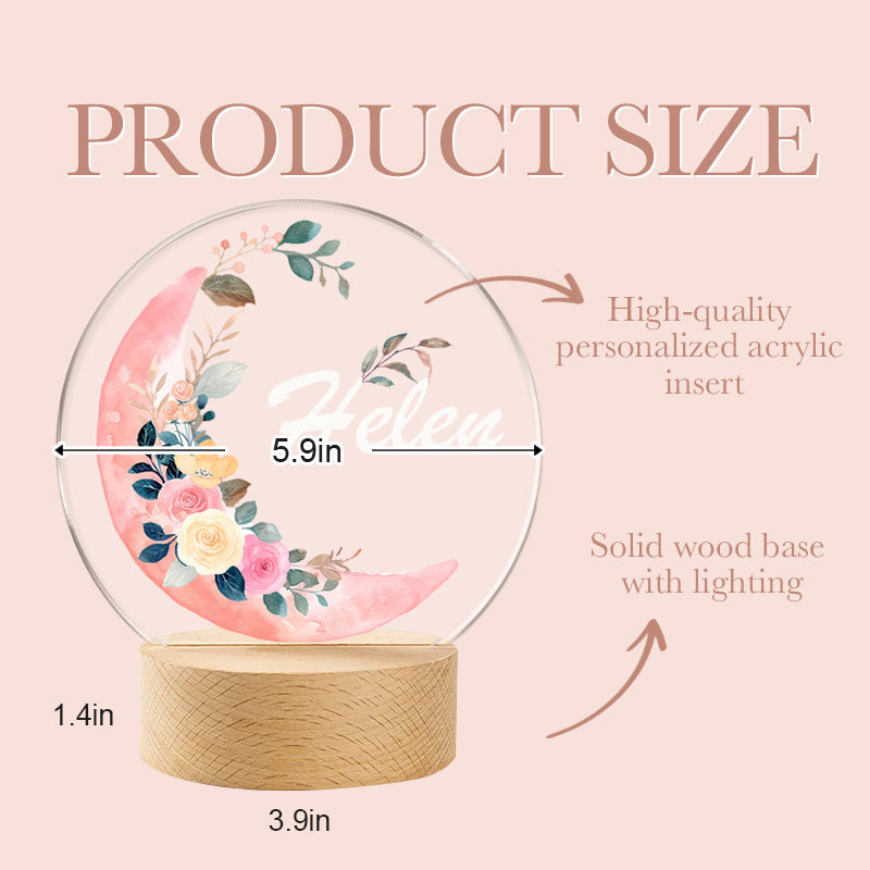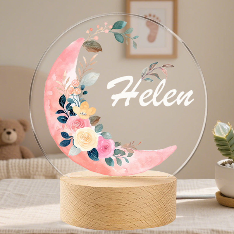 Personalized Baby Night Light with Moon and Flowers – Custom Name Nursery Lamp Keepsake – Unique Gift for Baby Showers, Newborns & Nursery Decor