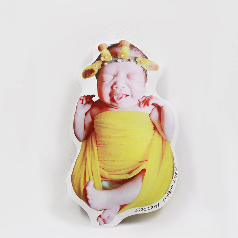 Turn your baby’s first moments into a keepsake you can hold close. Our Custom Baby Photo Pillow features your little one’s photo, automatically cut out into shape, along with personalized birth details—such as name, date, time, weight, and length—printed right beside the picture.