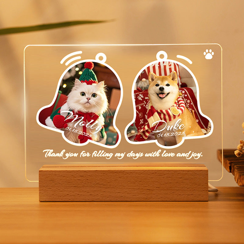 Personalized Bell Two Pet Memorial Acrylic Night Light