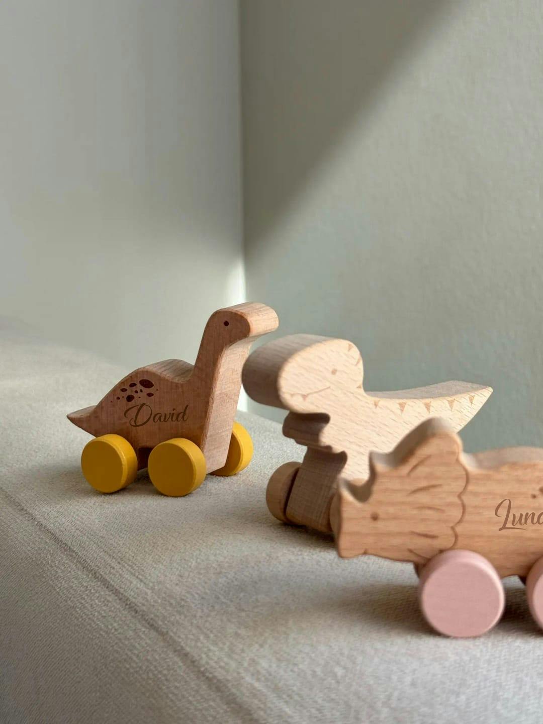 Turn playtime into storytelling with our Personalized Wooden Dinosaur Family Toy on Wheels — a keepsake designed to celebrate love, imagination, and family. Each dinosaur can be engraved with a name, making your set a one-of-a-kind treasure that brings your own "dino family" to life.