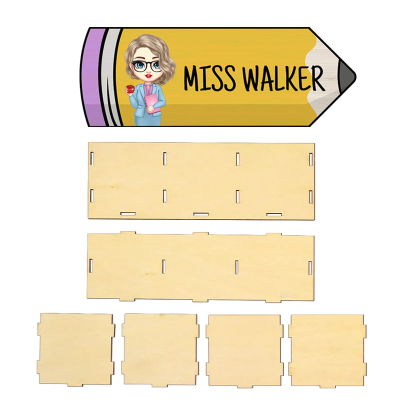 Crafted from natural wood and built to last, this elegant organizer helps keep pens, pencils, rulers, and other supplies neatly in place — while the customized front panel adds a meaningful, personal touch. Add a teacher’s name, title, or even a cartoon-style illustration for a truly one-of-a-kind design.