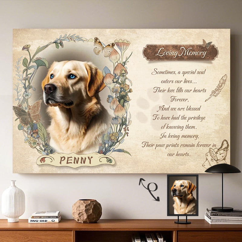 Designed to celebrate the love and companionship of your beloved fur child, this custom wall art serves as a heartfelt keepsake. It is thoughtfully crafted to honor the unique bond you shared, featuring your pet's name and photo. Whether displayed in your home or office, this memorial wall art brings comfort and warmth, keeping your pet's memory alive in a beautiful and meaningful way. Perfect for pet lovers, it’s a touching tribute to the joy and love your furry friend brought into your life.