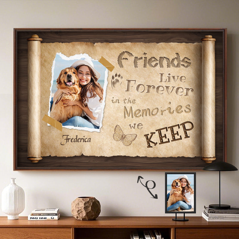 Custom Photo Friends Live Forever- Pets Personalized Custom Horizontal Poster/Canvas - Sympathy Gift For Pet Owners, Pet Lovers