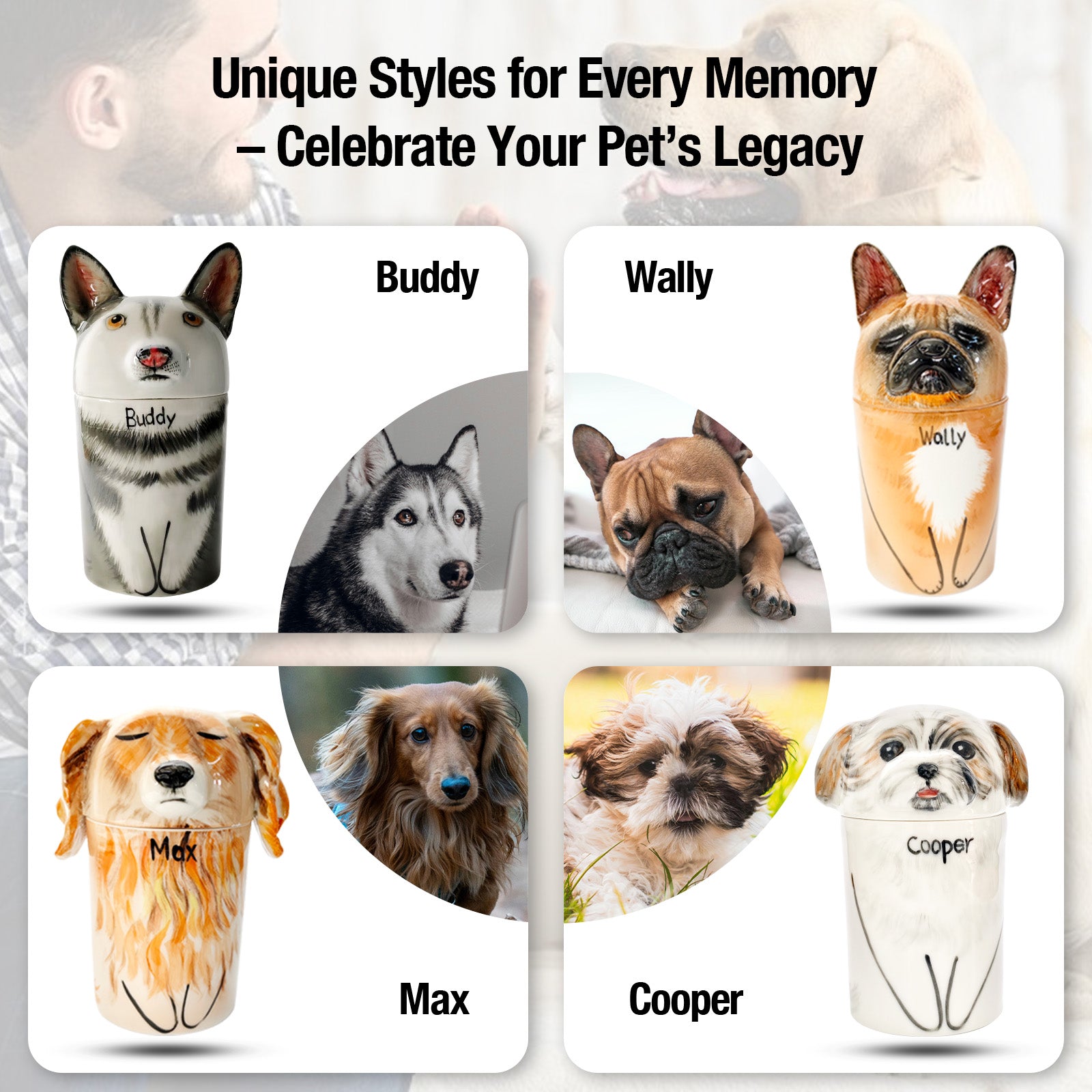 Keep the cherished memory of your companion alive with our Custom Ceramic Pet Urn. Handcrafted with love and care, this urn is a meaningful tribute that captures your pet's unique spirit and honors the bond you shared. Customize it with your pet‘s name and portrait, turning this urn into a personal reminder of the joy and love they brought into your life.