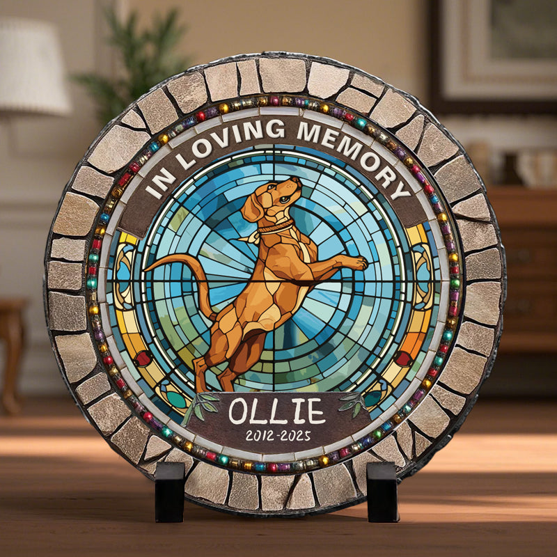 Custom In Memory Of A Precious Soul- Memorial Personalized Custom 3D Mosaic Faux Stained Glass Print Round Shaped Memorial Stone - Sympathy Gift For Pet Owners, Pet Lovers