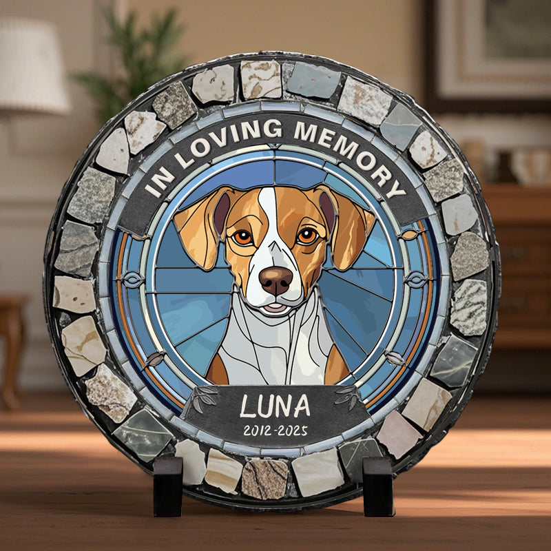 Custom In Loving Memory Of My Sweet Companion- Memorial Personalized Custom 3D Mosaic Faux Stained Glass Print Round Shaped Memorial Stone - Sympathy Gift For Pet Owners, Pet Lovers