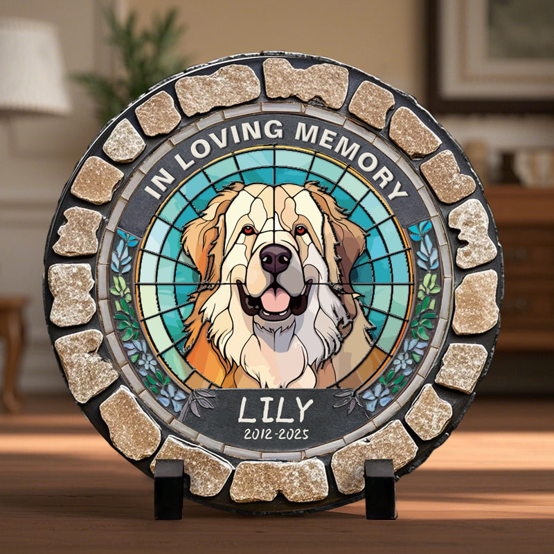 Custom In Loving Memory Of My Furry Friend- Memorial Personalized Custom 3D Mosaic Faux Stained Glass Print Round Shaped Memorial Stone - Sympathy Gift For Pet Owners, Pet Lovers